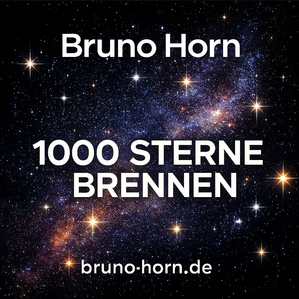 „1000 Sterne“ ist ein poetisch-dramatischer Popschlager aus der Feder von Bruno Horn, der mit seiner unverwechselbaren Handschrift den Moment einfängt, in dem Liebe zu Schatten wird. Mit seiner besonderen Art, Gefühle in klare, leuchtende Bilder zu verwandeln, erschafft Horn eine Welt, in der Sehnsucht, Schmerz und Hoffnung nebeneinander stehen. Die Melodie trägt seine typische emotionale Intensität – ein unter die Haut gehendes Beben, das die innere Reise des Songs spürbar macht.