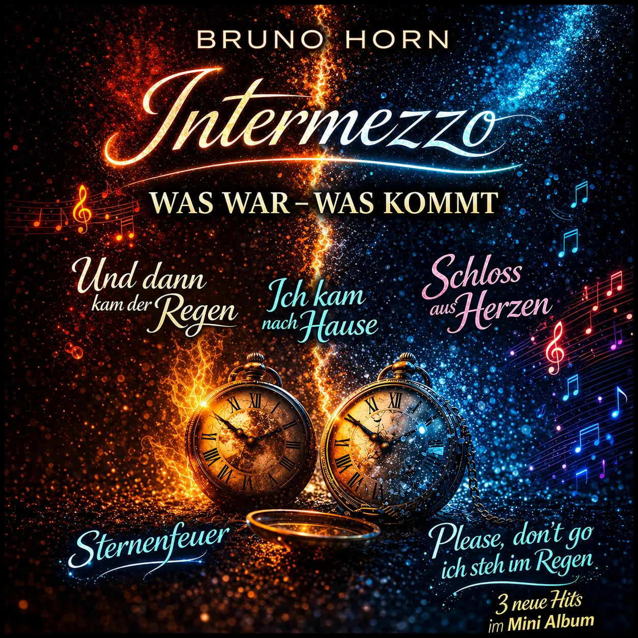 Mit seinem neuen Mini-Album „Intermezzo – Was war, was kommt“ schlägt Bruno Horn eine emotionale Brücke zwischen Vergangenheit und Zukunft. Die neuen Songs erzählen von Erinnerungen, Sehnsüchten und Neuanfängen – ehrlich, berührend und musikalisch vielseitig.